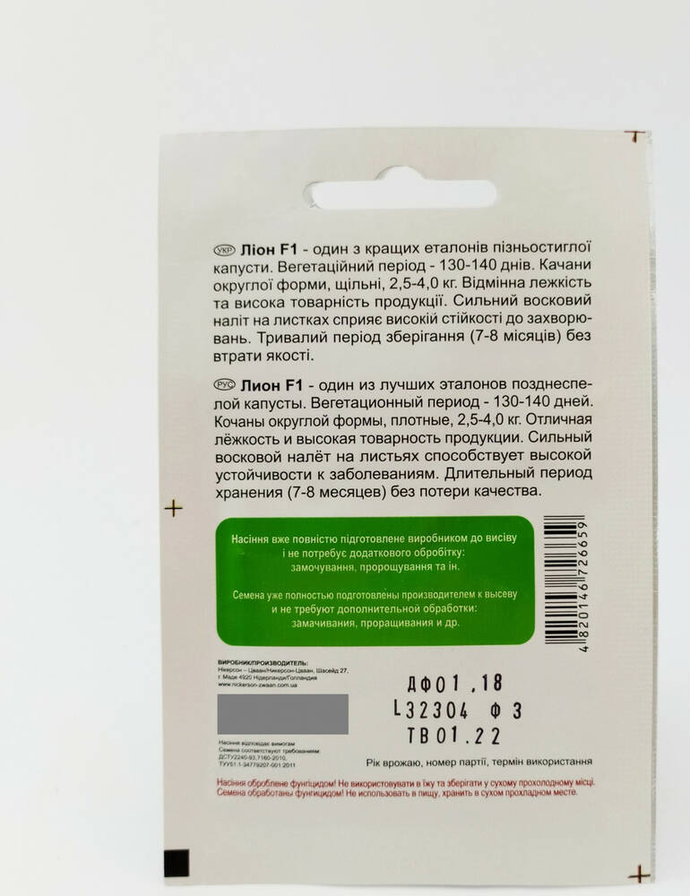 Семена капусты Лион F1 Садыба центр Никерсон-Цваан Голландия 20 шт