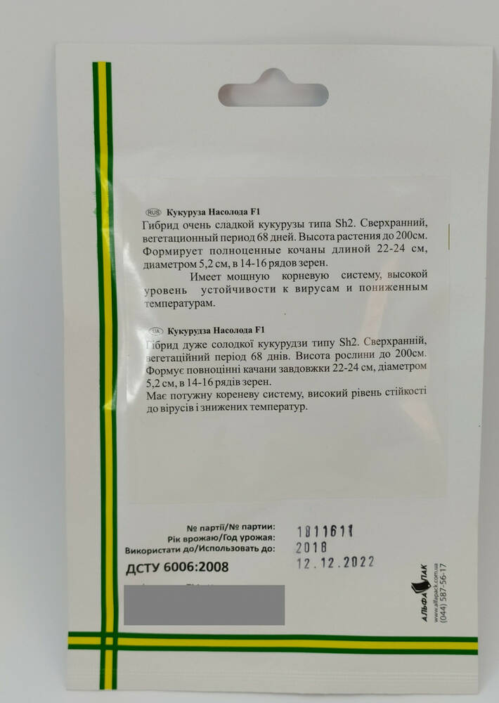Гибрид очень сладкий кукурузы типа Sh2. Сверхранний вегетационный период 68 дней. Высота растения до 200 см. Формирует полноценные кочаны длинной 22-24 см, диаметром 5,2 см, а 14-16 рядов зерен. Имеет мощную корневую систему, высокий уровень устойчивости к вирусам и пониженным температурам.