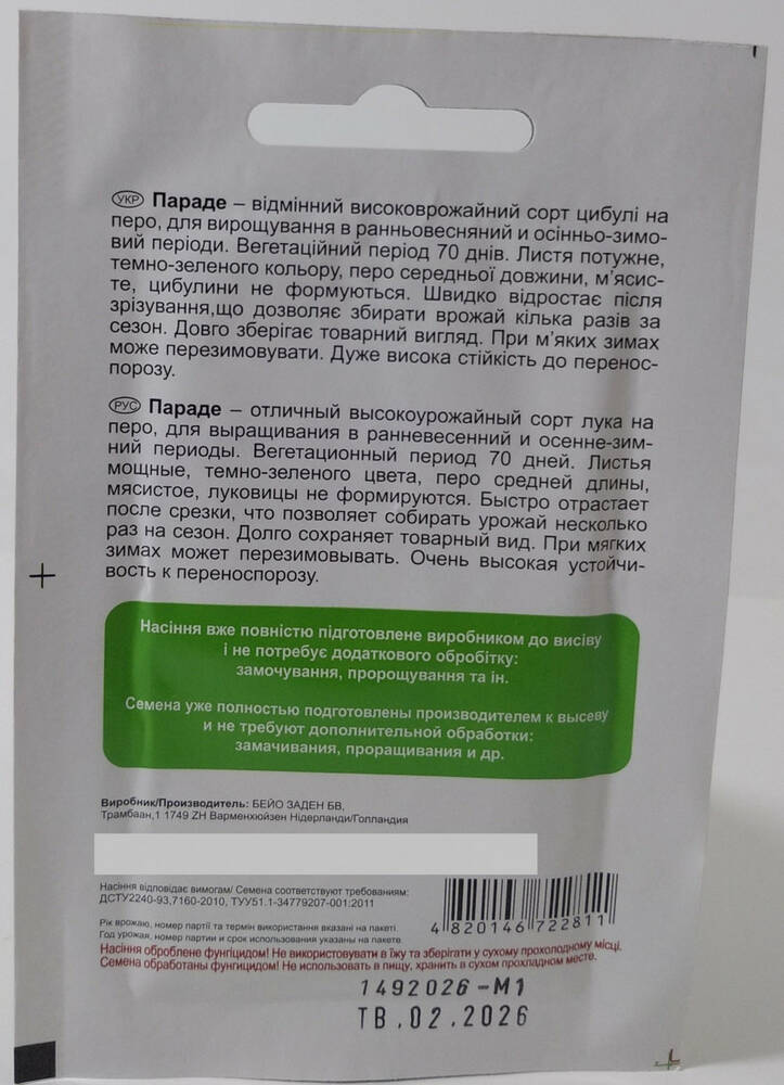 Отличный высокоурожайный сорт лука на перо для выращивания в ранневесенний и осенне-зимний периоды. Вегетационный период 70 дней. Листья мощные, темно-зеленого цвета, перо средней длины, мясистые, луковицы не формируются. Быстро отрастает после срезки, что позволяет убирать урожай несколько раз за сезон. Долго сохраняет товарный вид. При мягких зимах может перезимовывать. Очень высокая стойкость к переносупорозу.