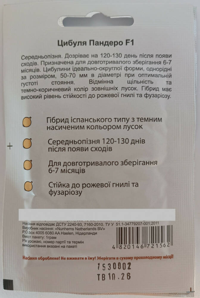 Семена лука Пандеро F1 Садыба центр Nunhems Голландия 1 г