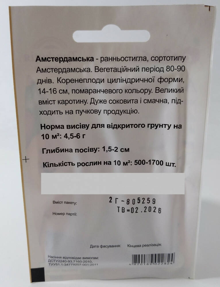 Раннеспелая, сортотипа Амстердамская. Вегетационный период 80–90 дней. Корнеплоды цилиндрической формы, 14-16 см, оранжевого цвета. Большое содержание каротина. Очень сочная и вкусная, подходит на пучковую продукцию.
