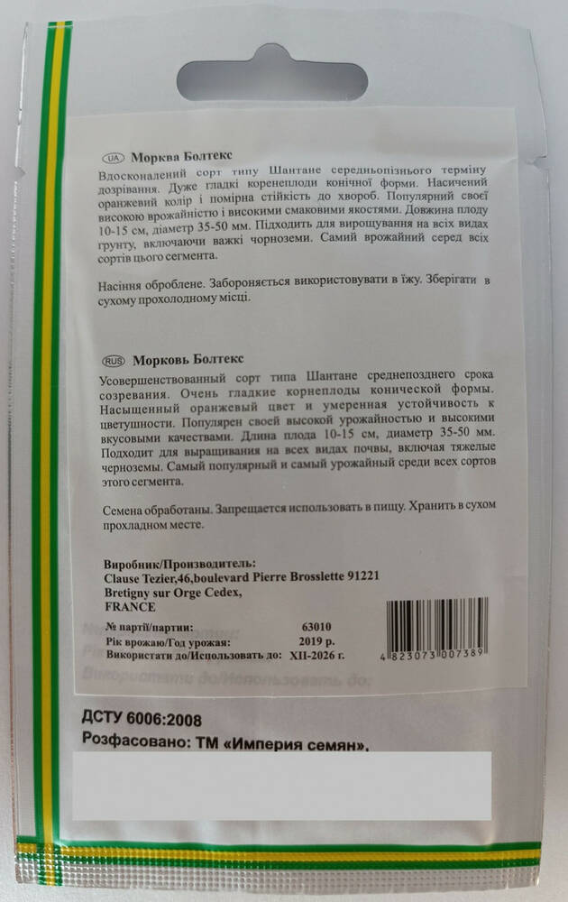 Семена моркови Болтекс Империя Семян Clause Франция 3 г