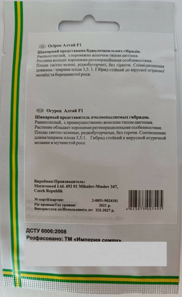Шикарный представитель пчелоопыляемых гибридов. Раннеспелый, с преимущественно женским типом цветения. Растение обладает хорошими регенерационными особенностями. Плоды светло-зеленые, редкобугорчатые, без горечи. Соотношение длина/ширина плода 3,5:1. Гибрид стойкий к вирусной огуречной мозаике и мучнистой росе.