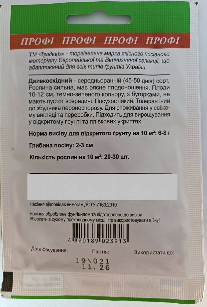 Среднеранний (45-50 дней) сорт. Растение сильное, имеет обильное плодоношение. Плоды 10-12 см, темно-зеленого цвета, с бугорками, не имеют пустот внутри. Засухоустойчив. Толерантен к возбудителю пероноспороза. Для употребления в свежем виде и переработки. Подходит для выращивания в открытом грунте и пленочных укрытиях.
