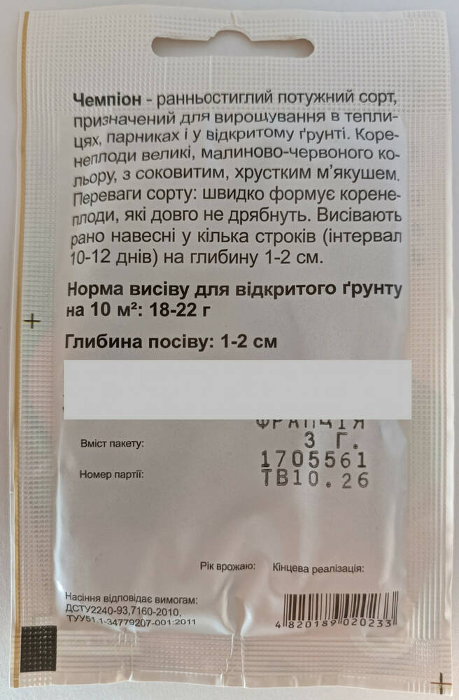Семена редиса Чемпион Садыба центр Франция 3 г