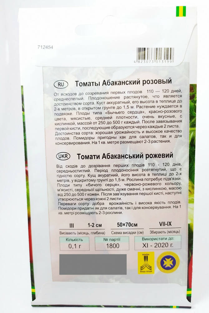От всходов до созревания первых плодов 110 — 120 дней, среднеспелый. Плодоношение растянутое, что является достоинством сорта. Куст аккуратный, его высота в теплице до 2-х метров, в открытом грунте до 1,5 м. Растение нуждается в подвязке. Плоды типа «Бычьего сердца», красно-розового цвета, мясистые, средней плотности, очень вкусные, с кислинкой, массой от 250 до 500 г каждый. После завязывания первой кисти, последующие образуются через каждые 2 листа. Достоинства сорта: хорошая урожайность и высокое качество плодов. Помидоры пригодны как для салатов, так и для консервирования. На 1 кв. метре размещают 2-3 растения.