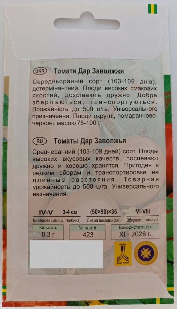 Семена томата Дар Заволжья Империя Семян Украина 0,3 г