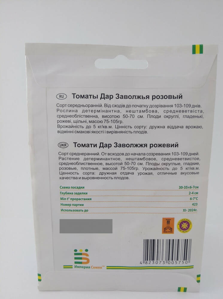 Семена томата Дар Заволжья розовый Империя Семян Украина 5 г