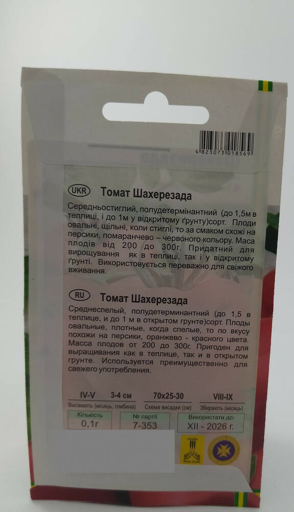 Среднеспелый полудетерминантный (до 1,5 в теплице, и до 1 м в открытом грунте). Плоды овальные, плотные, когда спелые то по вкусу похожи на персики, оранжево - красного цвета. Масса плодов от 200 до 300г. Пригоден для выращивания как в теплице, так и в открытом грунте. Используется преимущественно для свежого употребления.
