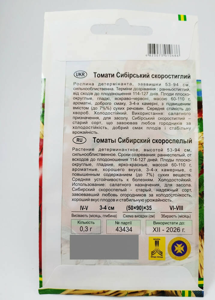 Семена томата Сибирский скороспелый Империя Семян Украина 0,3 г
