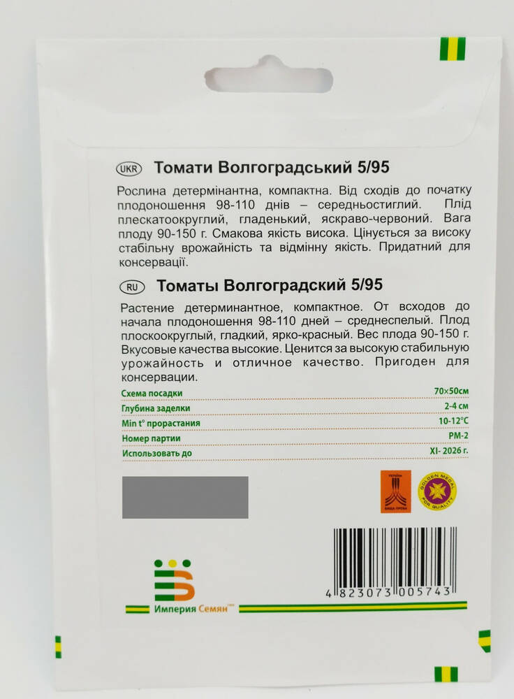 Растение детерминантное, компактное. От всходов до начала плодоношения 98-110 дней - среднеспелый. Плод плоскоокруглый, гладкий, ярко-красный. Вес плода 90-150 г. Вкусовые качества высокие. Ценится за высокую стабильную урожайность и отличное качество. Пригоден для консервации.
