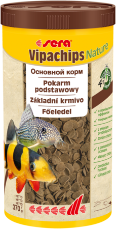 sera Vipachips Nature - основний корм, що складається з чіпсів із 4% борошна з комах без барвників та консервантів для всіх риб, що харчуються на дні.