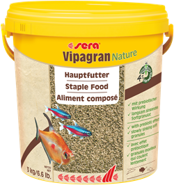 sera Vipagran Nature - основний корм, що складається з м'яких гранул із 4% борошна з комах, виготовлених без барвників та консервантів для всіх риб, що харчуються в середніх шарах води.