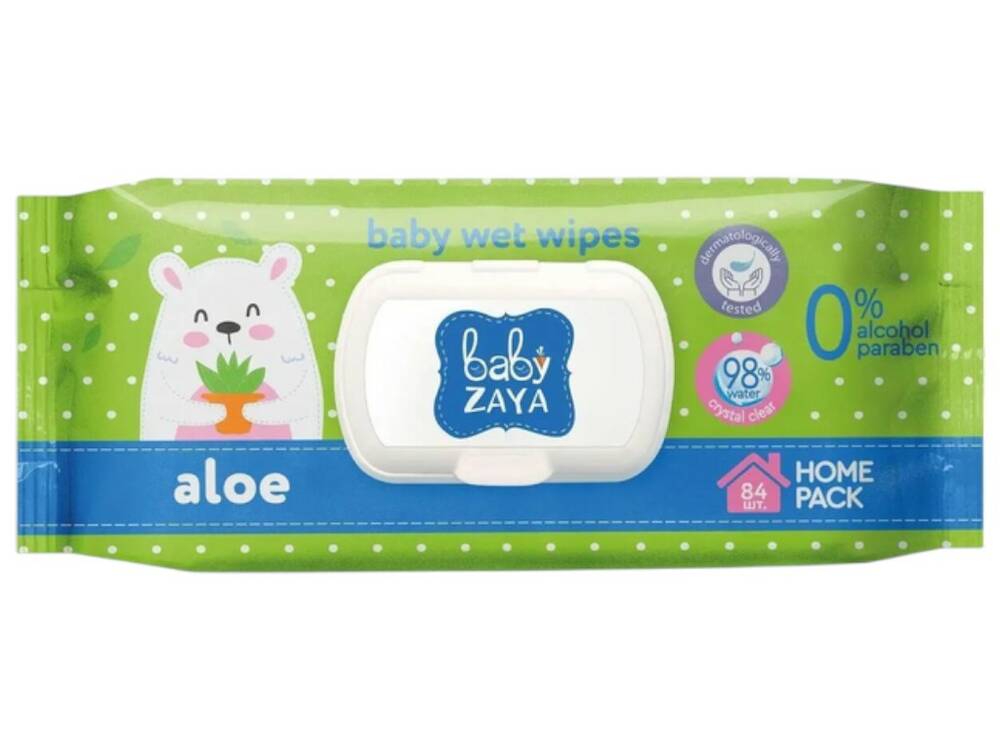 Вологі серветки Baby Zaya для новонароджених з алое вера, 84 шт