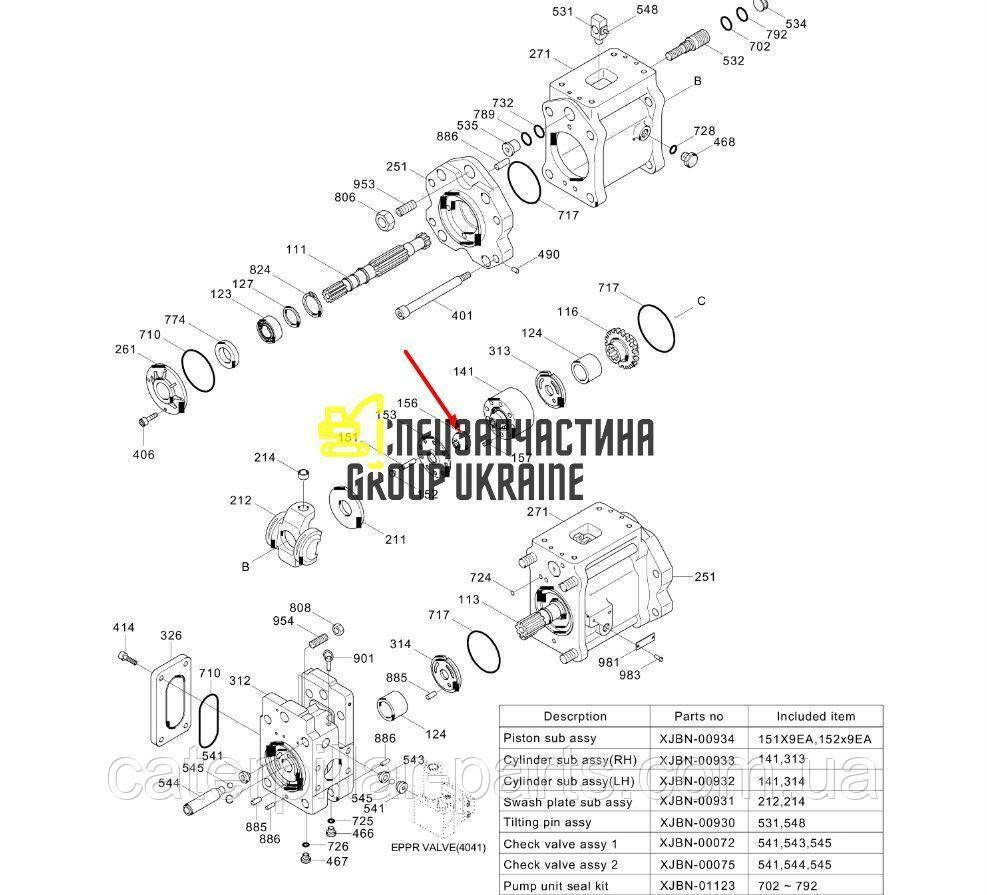 Сферична втулка із шайбою Kawasaki K3V XJBN-00083/XJBN-00353 Handok