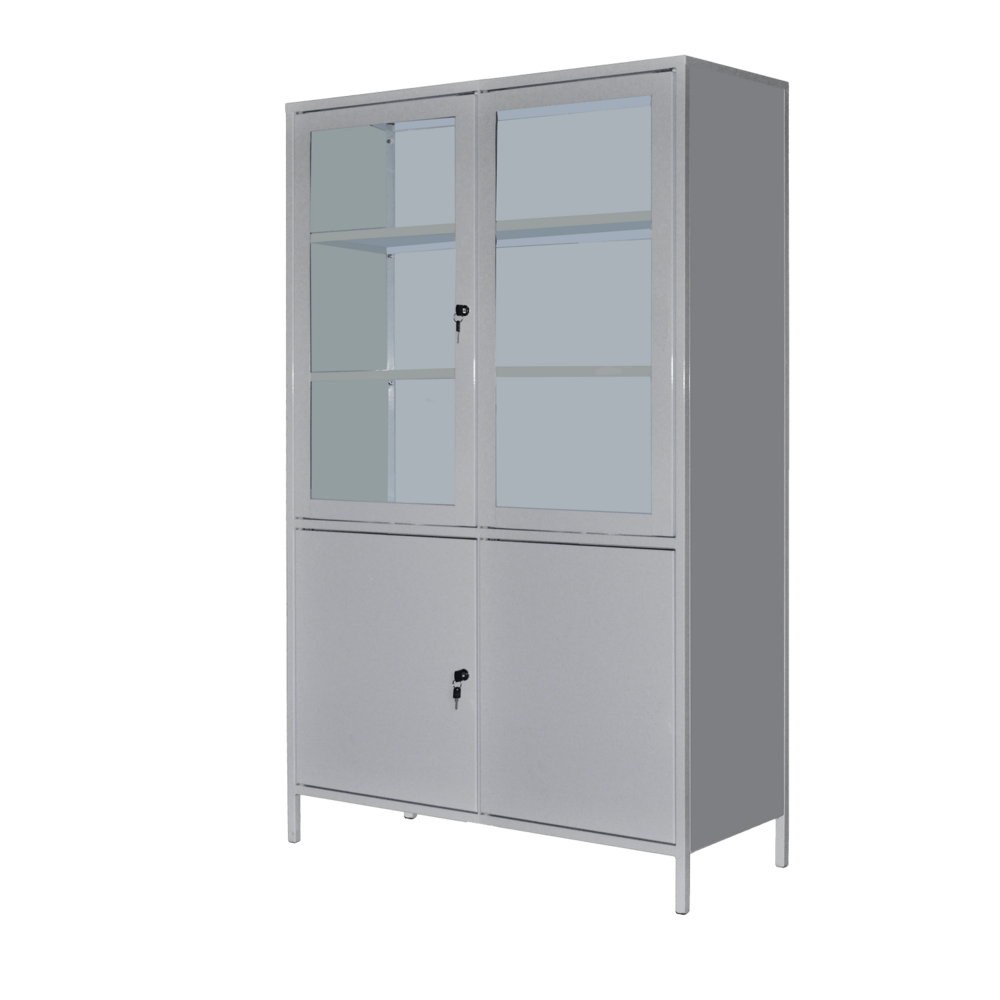 Шафа медична ШМ-2С — це професійна двостулкова металева шафа із подвійним вбудованим сейфом, призначена для зберігання медикаментів, інструментів і витратних матеріалів у ветеринарних клініках, лабораторіях, операційних та процедурних кабінетах. Модель забезпечує високий рівень безпеки та організації робочого простору при щоденній експлуатації.