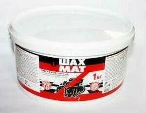 Шах і мат засіб родентицидний для дератизації в умовах побуту Опис Воскові брикети блакитного кольору. Склад 1кг препарату містить діючу речовину (г): флокумафен - 0,05. Допоміжні речовини: блакитний барвник - 1,0; восковий порошок - 250г; зернова основа - до 1 кг. Призначення засобу Отрута для щурів і мишей Шах в мат - потужний антикоагулянтний родентицид, що досить ефективний проти широкого спектру гризунів - мишей, щурів, піщанок, полівок та ін. Цей засіб від гризунів знищує навіть ті штами гризунів-шкідників, що стійкі до інших антикоагулянтних родентицидів. Засіб Шах і мат від щурів і мишей у вигляді воскових брикетів добре поїдається щурами. Засіб призначений для використання на забудованих територіях населених пунктів, включаючи харчові, житлові, лікувальні та дитячі приміщення. Шах і мат знищує чорних і сірих щурів, будинкових мишей. Засіб можна використовувати як в сухих, так і вологих приміщеннях, підвалах, льохах, каналізаційній мережі, підземних спорудах. Спосіб застосування засобу Отруту від щурів і мишей Шах і мат поміщають в ємності для розкладки приманок, на лотки або підкладки по одному брикету від мишей і по 2-3 брикети від щурів. Підвищити вживання засобу від щурів можна за допомогою розміщення отруєних приманок у спеціальні ємності, які перешкоджають їх розтягування гризунами. Ємності з брикетами слід розставити в місцях проживання гризунів: біля нір, уздовж стін і перегородок, на шляху переміщення. Між точками розкладу має бути відстань 2-15 метрів залежно від чисельності гризунів і захаращеності приміщень. Місця розкладки засобу Шах і мат від щурів слід оглядати через 1-2 дні, а пізніше з інтервалом 1 тиждень. До брикету, що повністю або частково з'їдений, слід додавати новий. Зіпсовані і забруднені брикети необхідно міняти на свіжі. Деякі брикети можна перемістити в нове місце. Такі роботи проводять до повного зникнення гризунів. Після закінчення боротьби з гризунами всі приманки і ємності потрібно зібрати для подальшого знищення або повторного використання (якщо вони придатні для даної мети). Трупи полеглих гризунів потрібно зібрати і знищити. Застережні заходи Отруту від щурів і мишей Шах і мат забороняється використовувати в місцях оброблення та зберігання харчових продуктів, біля джерел води, а також у місцях, доступних для домашніх тварин і дітей. Під час роботи із засобом слід ретельно дотримуватися правил особистої гігієни: не приймати їжу і не палити. Після роботи руки необхідно вимити теплою водою з милом, а забруднений спецодяг замочити в мильно-содовому розчині протягом 5-6 годин. Зберігання В щільно закритій упаковці в добре провітрюваному і недоступному для дітей та тварин місці, окремо від кормів і продуктів харчування при температурі до +30°С. Форма випуску Поліетиленова плівка по 10 брикетів, банки полімерні чи металізовані упаковки по 1кг. Термін придатності - 5 років з дати виготовлення.