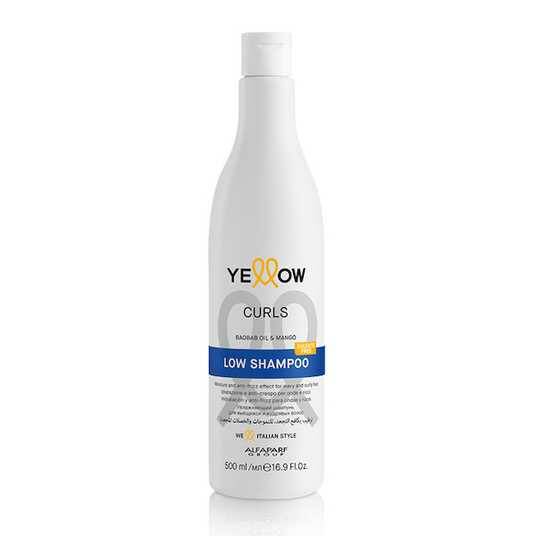 Шампунь для кучерявого волосся Yellow Curls Low Shampoo, 500 мл. Це делікатний безсульфатний шампунь, розроблений спеціально для кучерявого, хвилястого та пористого волосся. Його формула на основі натуральних масел манго та баобаба зволожує, відновлює та надає блиску, допомагаючи зберігати природну форму завитків.