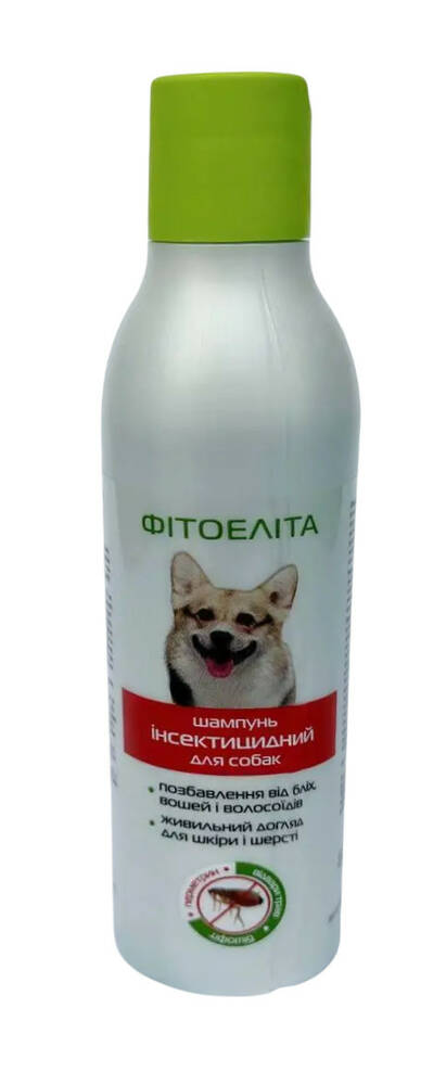 Шампуні серії Фітоеліта - це ефективні, натуральні та безпечні миючі засоби на основі настоїв лікарських трав. Шампунь інсектицидний для собак розроблений для захисту тварини від ектопаразитів (бліх, вошей, власоїдів), ефективно знімає свербіж та алергічні реакції на укуси.