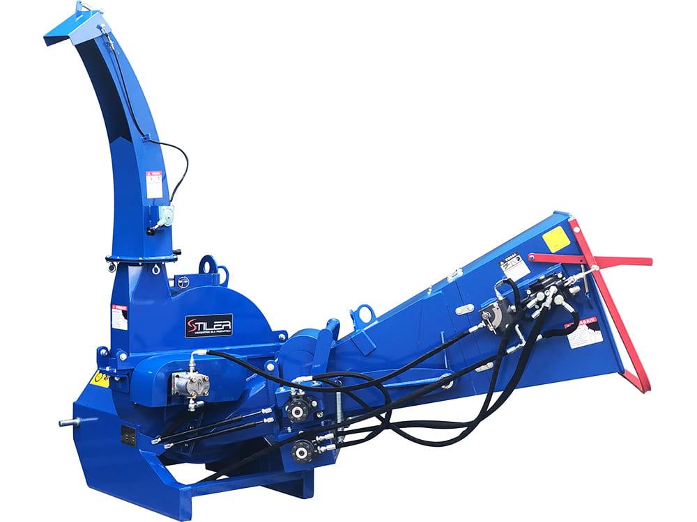 Отриману дерев'яну стружку викидають через трубу, повернуту на 360° щодо основи подрібнювача.