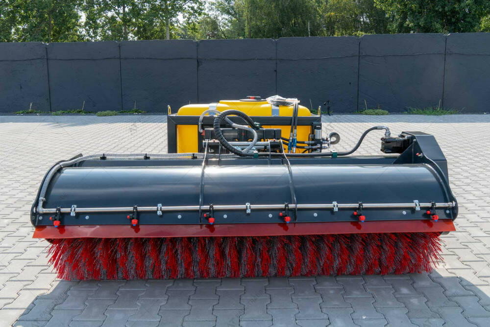 Щітка дорожня, комунальна, з баком – функціональне навісне обладнання для мінінавантажувачів, телескопічних та фронтальних навантажувачів, а також екскаваторів-навантажувачів, що застосовується для прибирання сміття, піску і листя з територій як в критих цехах, ангарах, складах, так і на дорогах з твердим покриттям, майданчиках з плитки, велосипедних доріжках, дворах. Щітка оснащена баком для води (300 л), завдяки якому створюється волога завіса, яка не дає пилу підніматися в повітря. У зимовий період може застосовуватися для прибирання снігу. Максимальне очищення ділянки відбувається за один хід. Конструкція щітки має змінні поліпропіленові диски з високою жорсткістю ворсу. Корпус щітки виконаний зі зносостійкої сталі S355.