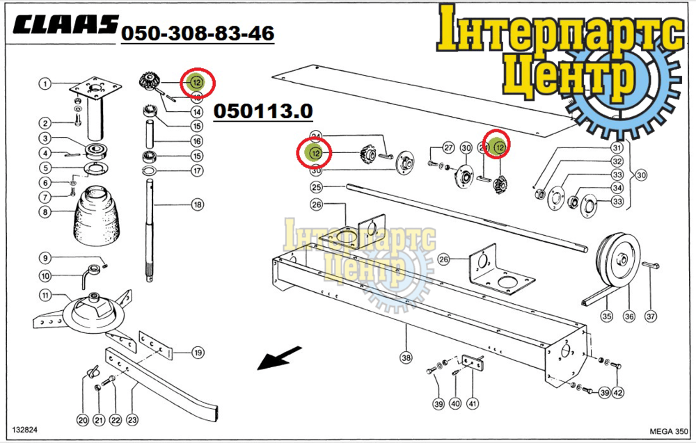 Шестерня конічна розкидача соломи 050113.0, 0000501130, CLAAS