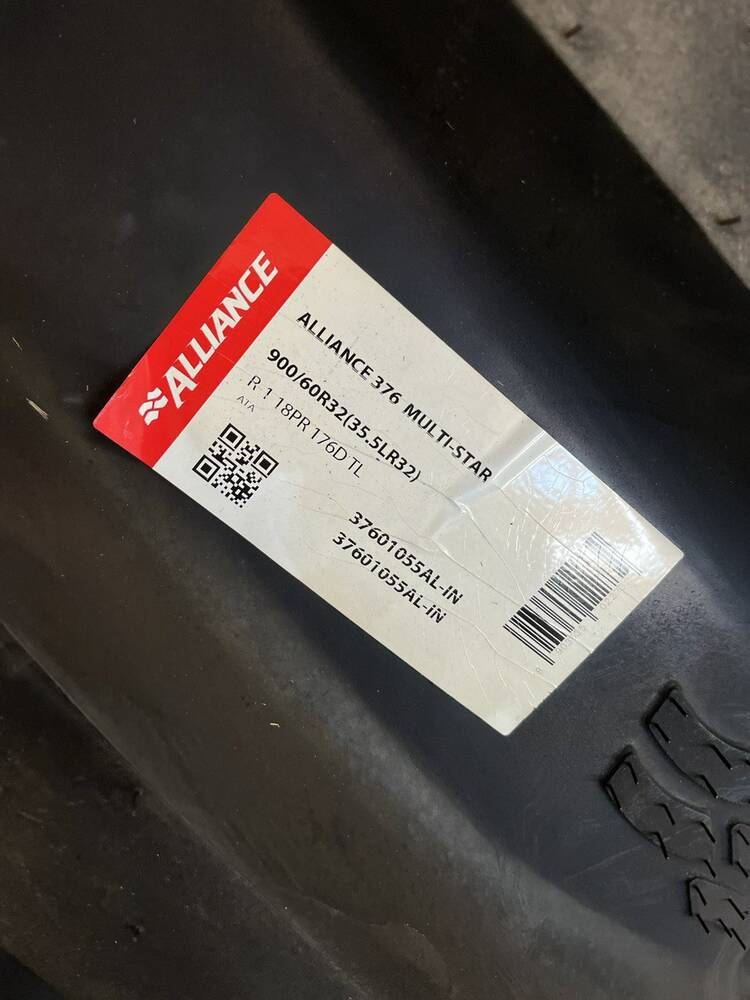 шина 900/60R32, Alliance 376, шина Alliance 376 STEEL BELTED, радіальна шина для комбайна, шина для трактора, шина для Claas, шина для John Deere, шина для New Holland, шина для Case IH, агрошина 900/60R32, безкамерна шина, шина для перевантажувача, шина з металокордом, сільгоспшина Alliance, шина для комбайна, R-1W, шини для поля, шини для вологого ґрунту, шини для аграрної техніки.