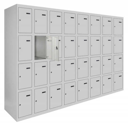Універсальність конструкції дозволяє зручно складувати шафи в будь-якому приміщенні, а можливість їхнього з'єднання у вигляді блоків робить їх ідеальним варіантом для організації простору будь-якого розміру. Кожна секція шафи оснащена врізним механічним замком з двома ключами для забезпечення надійності та конфіденційності зберігання.