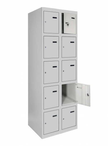 Універсальність конструкції дозволяє зручно складувати шафи в будь-якому приміщенні, а можливість їх з'єднання у вигляді блоків робить їх ідеальним варіантом для організації простору будь-якого розміру. Кожна секція шафи оснащена врізним механічним замком із двома ключами для забезпечення надійності та конфіденційності зберігання.