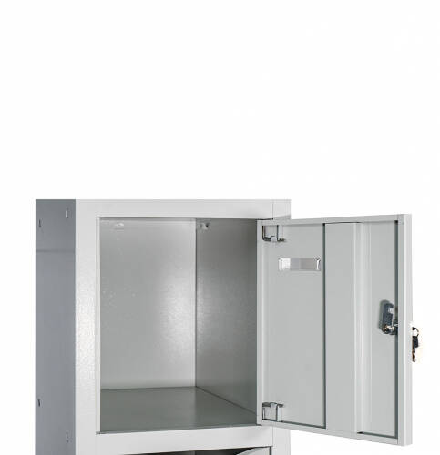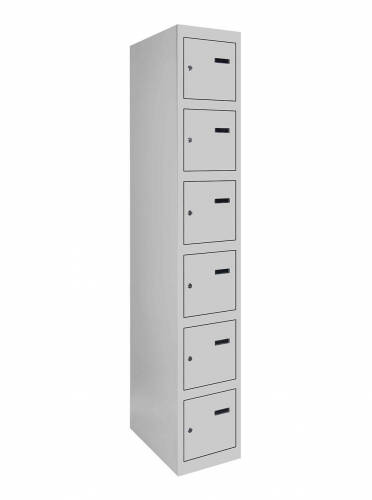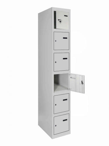 Універсальність конструкції дозволяє зручно складувати шафи в будь-якому приміщенні, а можливість їхнього з'єднання у вигляді блоків робить їх ідеальним варіантом для організації простору будь-якого розміру. Кожна секція шафи оснащена врізним механічним замком з двома ключами для забезпечення надійності та конфіденційності зберігання.