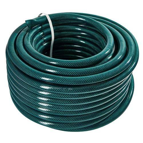 Шланг виготовлений із високоякісного полівінілхлориду (ПВХ), що відзначається підвищеною міцністю, гнучкістю та зносостійкістю. Його структура забезпечує стійкість до впливу вологи, ультрафіолетового випромінювання та перешкоджає утворенню водоростей усередині, що значно подовжує термін служби. Завдяки своїй універсальності, шланг підходить для зрошення садів і городів, наповнення резервуарів, підключення до систем водопостачання, а також для різноманітних господарських і промислових завдань.