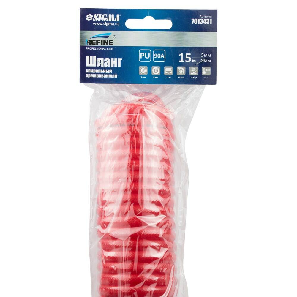Шланг спіральний поліуретановий (PU) армований 15м 5.5×8мм REFINE (7013431)