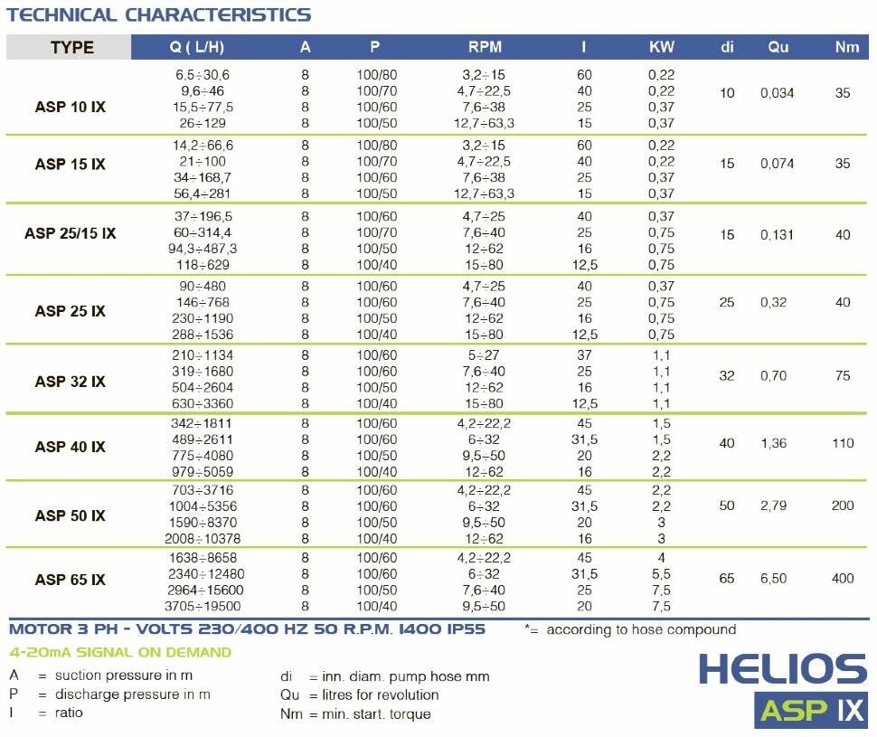 Перистальтичні насоси серії HELIOS ASP італійської компанії FLUIMAC застосовується для точного дозування абразивних продуктів, кислот, в'язких і щільних рідин. Перистальтичні насоси мають тривалий термін служби і підвищену надійність. Працюють в режимі самовсмоктування. Безперервна робота в сухому режимі. Швидке і просте технічне обслуговування.