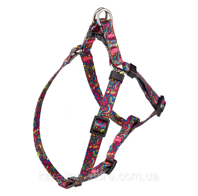 Шлея "KARELINE" з нейлону з візерунком "KALEIDOSCOPE" та пластиковою пряжкою 15 мм, А:350-480 мм, В:400-570 мм