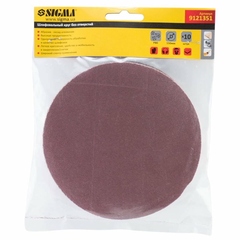 Шліфувальний круг без отворів Ø150мм P80 (10шт) SIGMA (9121351)