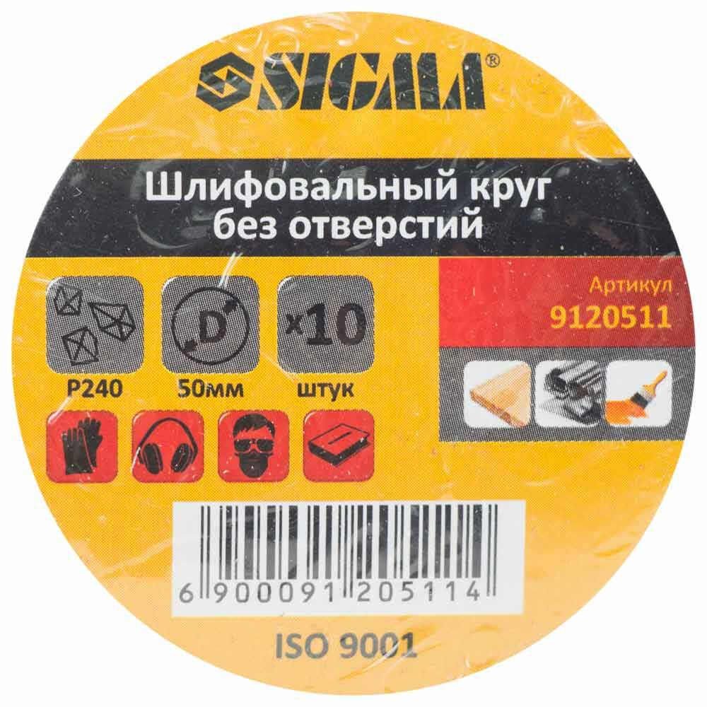 Шліфувальний круг без отворів Ø50мм P240 (10шт) SIGMA (9120511)