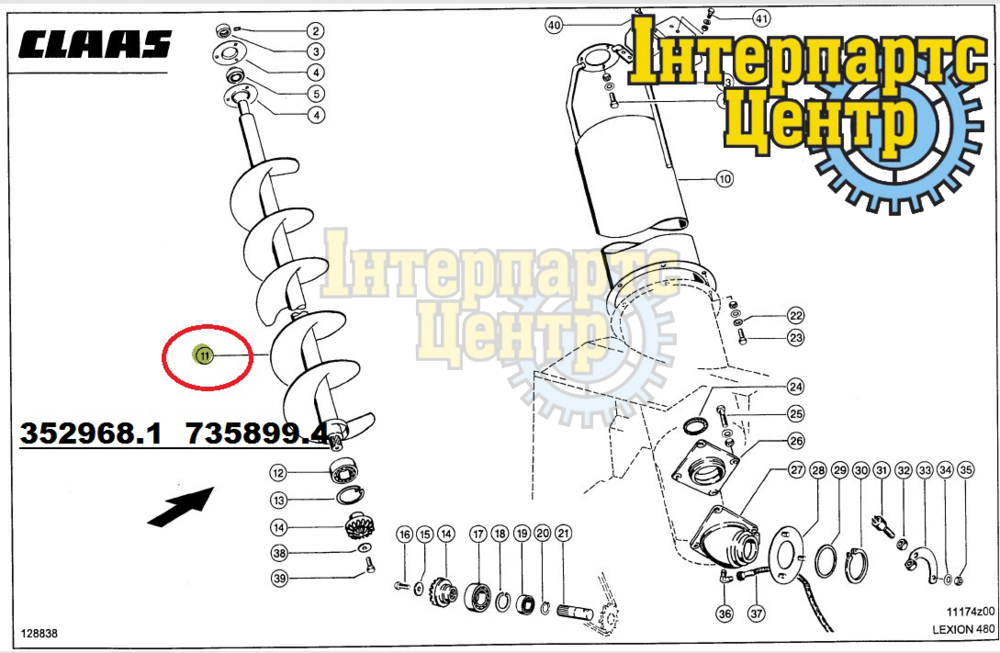 Шнек завантажний бункера посилений, 352968.1, 735899.4, 0003529682, АНАЛОГ!