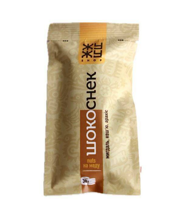 Шоколадний снек з горіхами на меду 30 г (без цукру)