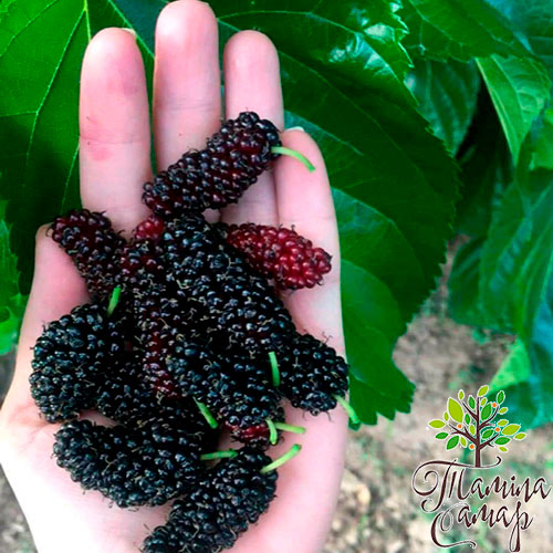 Шовковиця Шеллі чорна,щеплена – чудовий крупноплідний сорт шовковиці, який дає плоди темно-фіолетового, майже чорного кольору. Вирощується, маючи вигляд дерева, сягає заввишки біля 3-4 м, формує красиву пишну крону округлої форми.