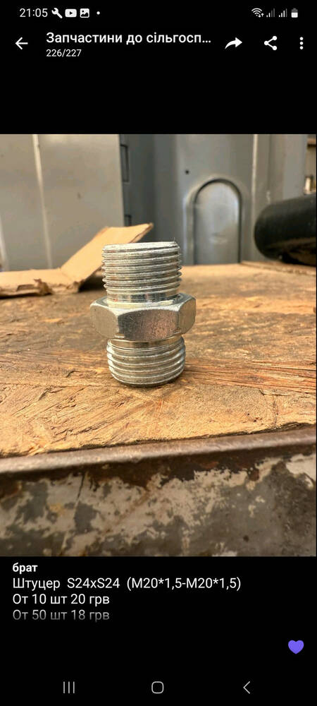 Штуцер S24хS24 (М20*1,5-М20*1,5)