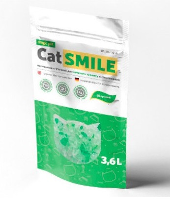 Силикагелевий наповнювач Cat Smile вбирає вологу і усуває неприємний запах котячих випорожнень, забезпечуючи безумовний ефект дії.Це натуральний твердий гідрофільний сорбент який має бактерицидну формулу,завдяки якій абсорбується і нейтралізується неприємний запах, підтримуючи свіжість повітря у вашому будинку або квартирі.