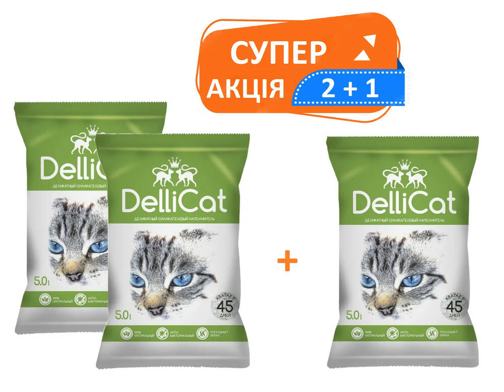 Силікагелевий наповнювач DelliCat Green для ніжних лапок 2+1 (зелений)