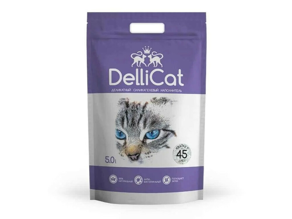 Сілікагелевой наповнювач для котячих туалетів ТМ «DelliCat» економічний і зручний у використанні. Кристали «ДелліКет» просякнуті натуральним ароматом, який активізується при намоканні. Серія представлена пятьма ароматами: лаванда, морська свіжість, квітковий, яблуко, дитяча присипка. Однієї упаковки вистачає до двох місяців для однієї кішки.