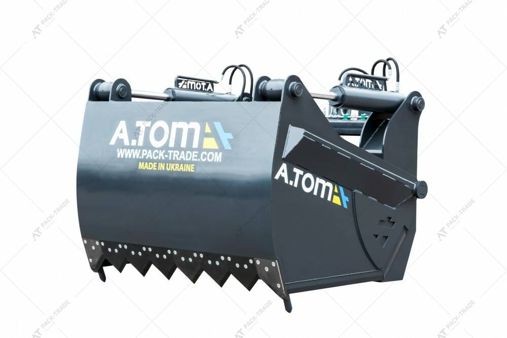 Силосний різак - А.ТОМ 1,6 м³ — це універсальне та надійне навісне обладнання, призначене для зрізу корму, сіна, сухої та вологої соломи. Оснащений сталевими гартованими лезами підвищеної твердості, які розташовуються зверху та з обох боків. Робочий хід (функціонування верхнього різака) забезпечується гідравлікою — двома гідроциліндрами, потужності яких вистачає для точного зрізання найщільнішої структури силосу. Завдяки цьому досягається рівний зріз, що допомагає запобігти потраплянню в силос теплого повітря з одночасним збереженням його поживної цінності. Обладнання може також використовуватися для розрізання продукції у плівці, що є зручним під час подавання корму безпосередньо в приміщенні, а також для навантаження кормозмішувачів. Закрита конструкція ковша дозволяє мінімізувати втрати вантажу при переміщенні, а значний об’єм дозволяє економити час та витрати на паливо, підвищуючи рентабельність робіт.