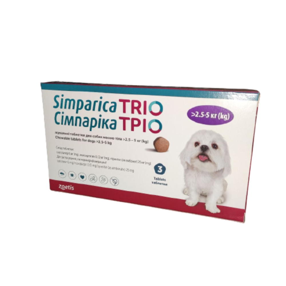 Simparica TRIO – протипаразитарний препарат широкого спектру дії, який можна використовувати для лікування тварин віком від 8 тижнів, вагою понад 1, 25 кг.