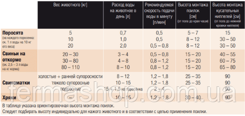 Рекомендуется эта поилка для подсосных поросят и поросят до 3 месяцев и весом до 30 кг.