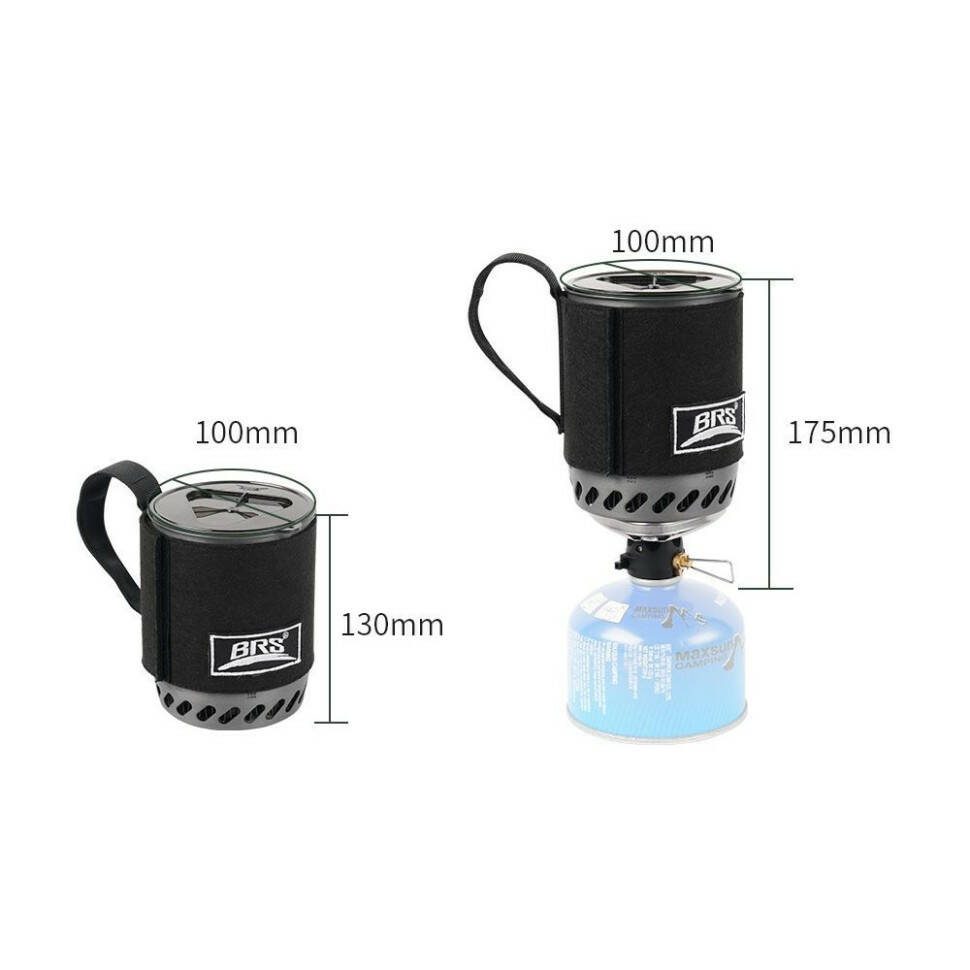 Розміри системи у встановленому положенні сягають Ø100 х 175 мм, а вага дорівнює 360 г, що дозволяє брати її з собою в пішу подорож, не обтяжуючи основне спорядження. Разом з пальником рекомендується використовувати газовий балон 110 г (купується окремо).