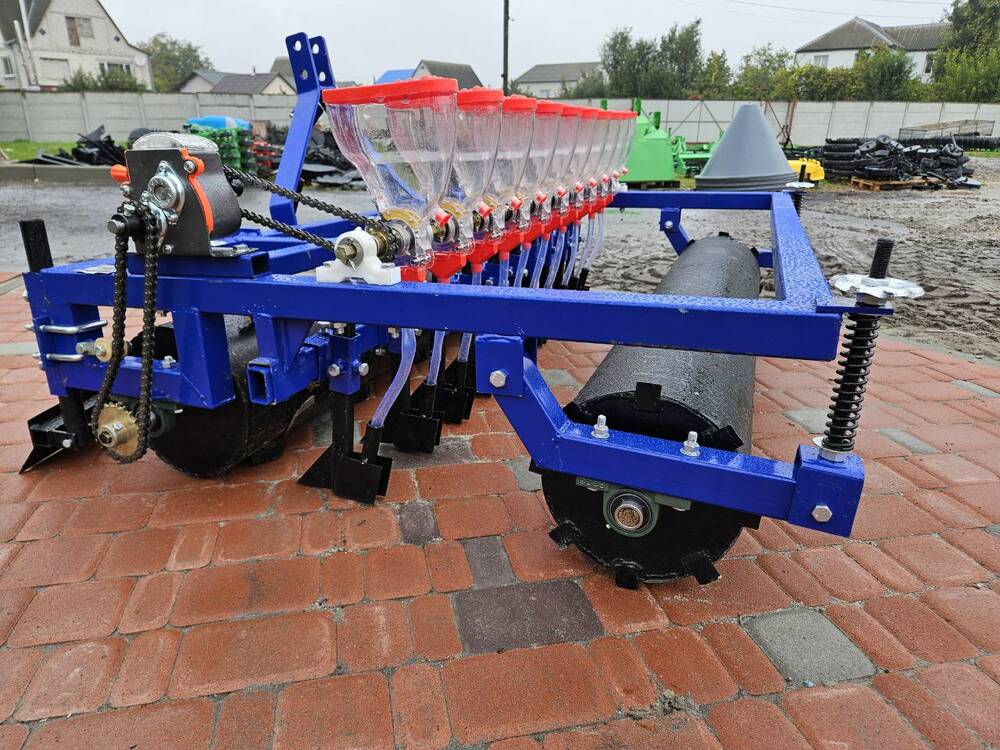 У передній частині сівалки, перед висівними сошниками, встановлен регульований пристрій для вирівнювання поверхні ґрунту та розгладжуючий каток, що дозволяє ідеально підготувати посадковий шар ґрунту до внесення в нього зерен або насіння. За сошниками встановлен прикочуючий каток, що дозволяє загортати насіння та розбивати грудки. Змінюючи передавальне відношення ланцюгової передачі, можна регулювати крок висіву насіння в ряду. При правильній організації роботи, сівалкою можна засіяти до 0,4 га на годину. Міжрядковий інтервал становить 40-120 мм. Крок посадки в ряду залежить від встановленого дозуючого барабана і обраної передачі КПП.