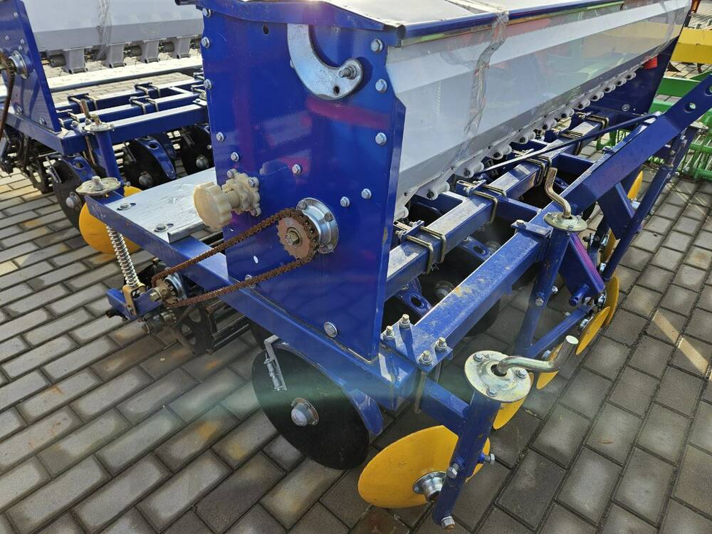 • бункер з нержавіючої сталі товщиною 0,7 мм, висівним апаратом для насіння та внесення добрив;