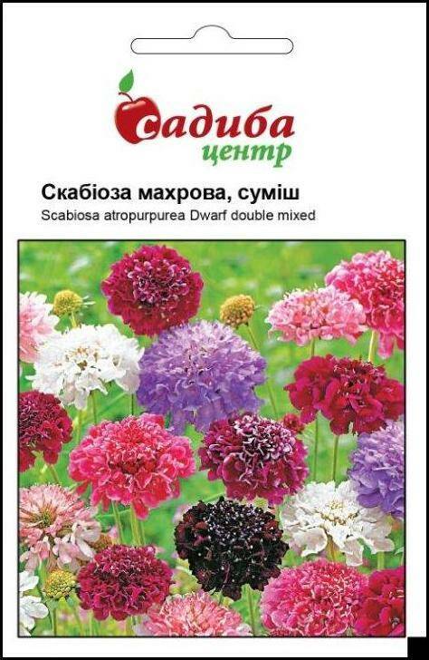 Скабіоза махрова, суміш – найефектніші поєднання кольорів дивовижного однорічника висотою 45 см з великими ароматними квітами. Висівають насіння на початку квітня у відкритий ґрунт, прикриваючи шаром компосту. На розсаду висівають у лютому-березні, висаджуючи її на постійне місце в червні. Рослина сонцелюбна, не боїться холодів, рясно цвіте від червня аж до листопада та добре реагує на внесення фосфорно-калійних добрив. Прекрасно виглядає у бордюрах, на клумбах; одна із найпопулярніших квіток для створення весільних букетів (у зрізі стоїть до 20 днів).